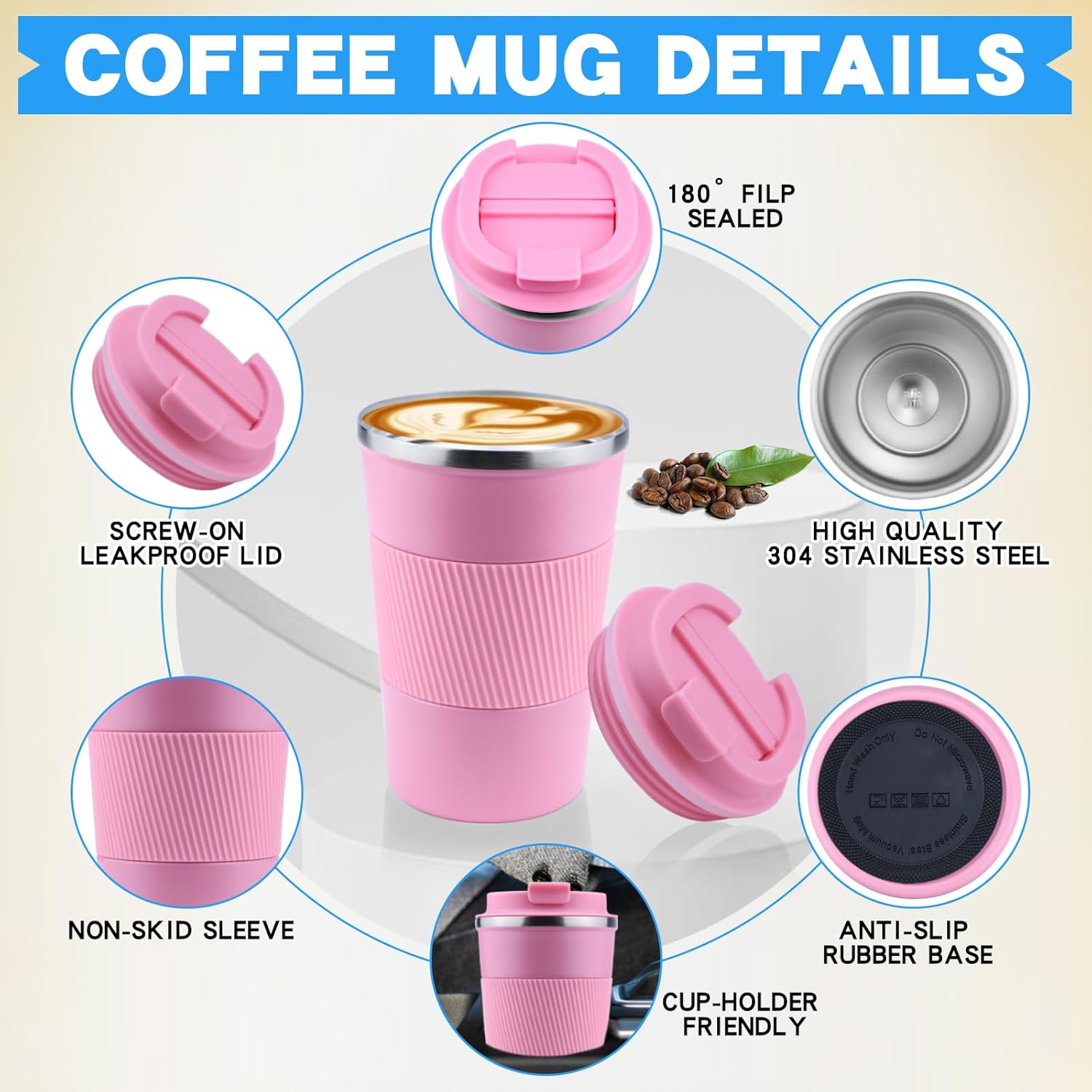 - Leakproof Lid: The mug comes with a leakproof lid, ensuring a secure seal to prevent spills and leaks, making it a convenient and reliable choice for your daily beverage needs